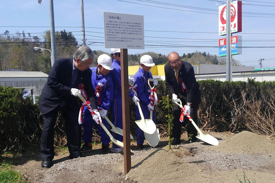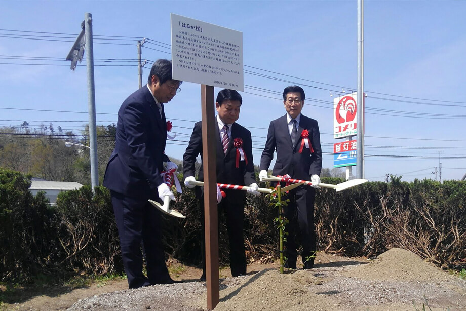 2016年4月20日(水)、道の駅川俣町 おりもの展示館(福島県川俣町)において、「はるか」の植樹式を開催いたしました。