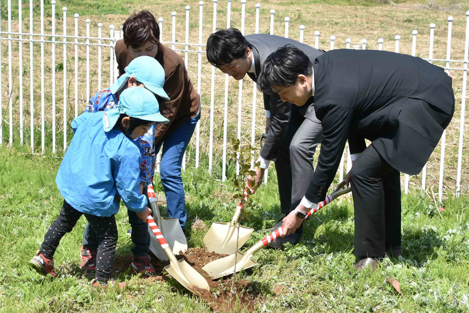 2018年4月13日(金)、昨年に引き続き、茨城県坂東市内の3か所の保育施設において「はるか」の植樹式を開催しました。