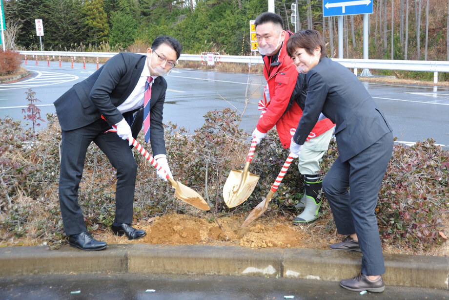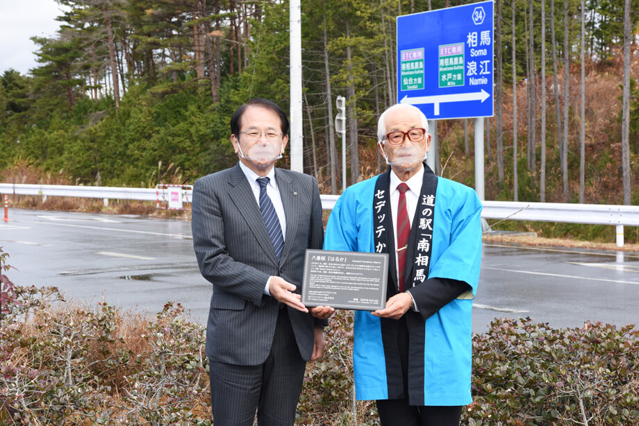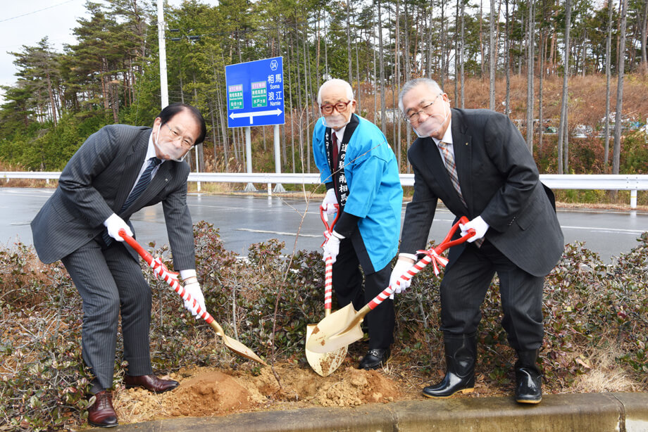 2020年12月14日(月)に、福島県南相馬市の常磐自動道サービスエリア利活用拠点施設「セデッテかしま」へ復興のシンボルとして福島県で育てられた新種の桜「はるか」の苗木を寄贈、植樹式を開催いたしました。